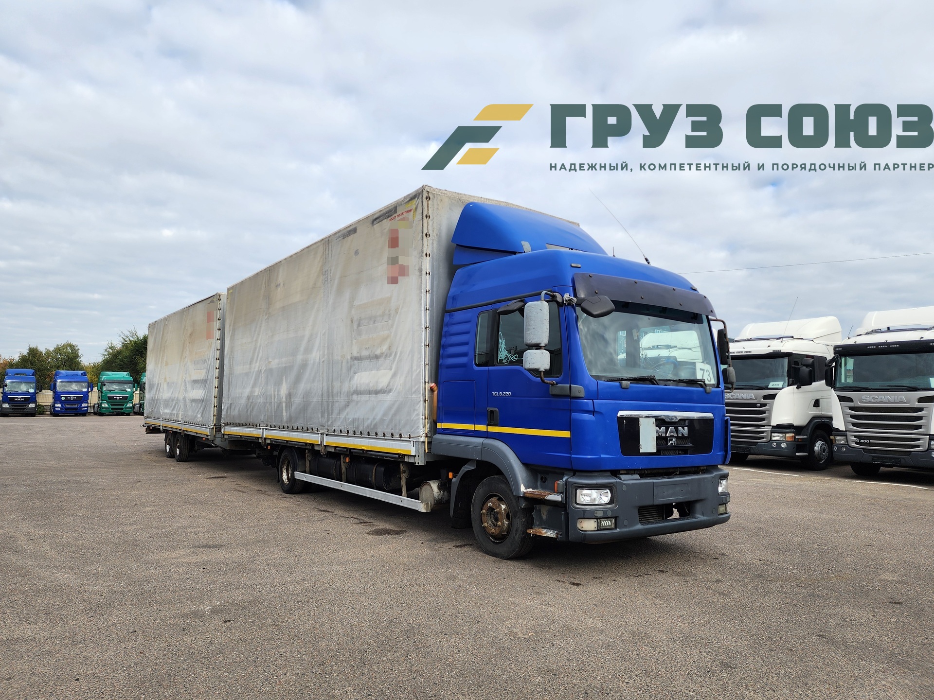 В наличии автопоезд тентованный MAN TGL 8.220 / TRAMP TRAIL в хорошем техническом и внешнем состоянии.