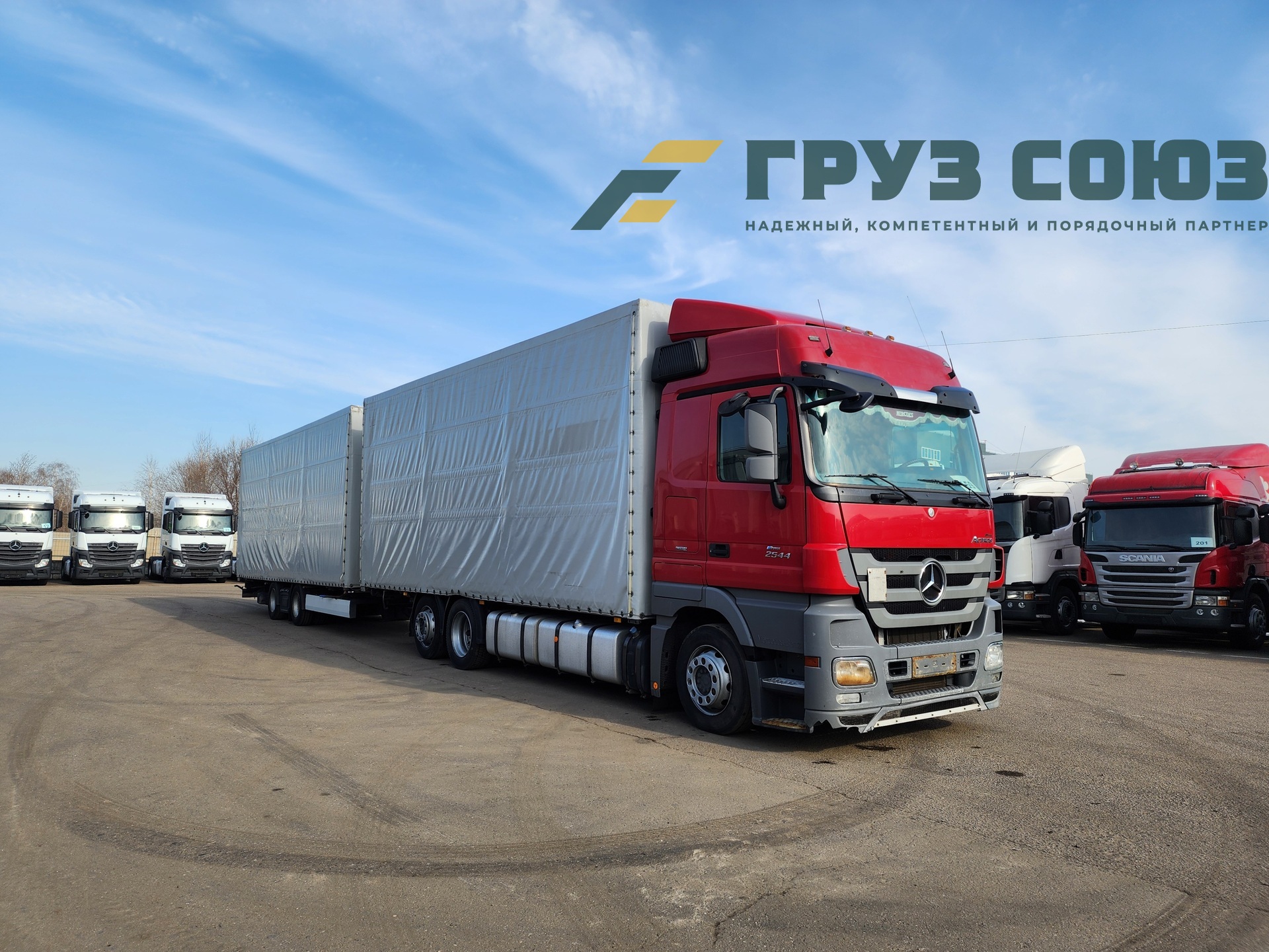 В наличии автопоезд тентованный Mercedes-Benz ACTROS 2544L в хорошем техническом и внешнем состоянии.