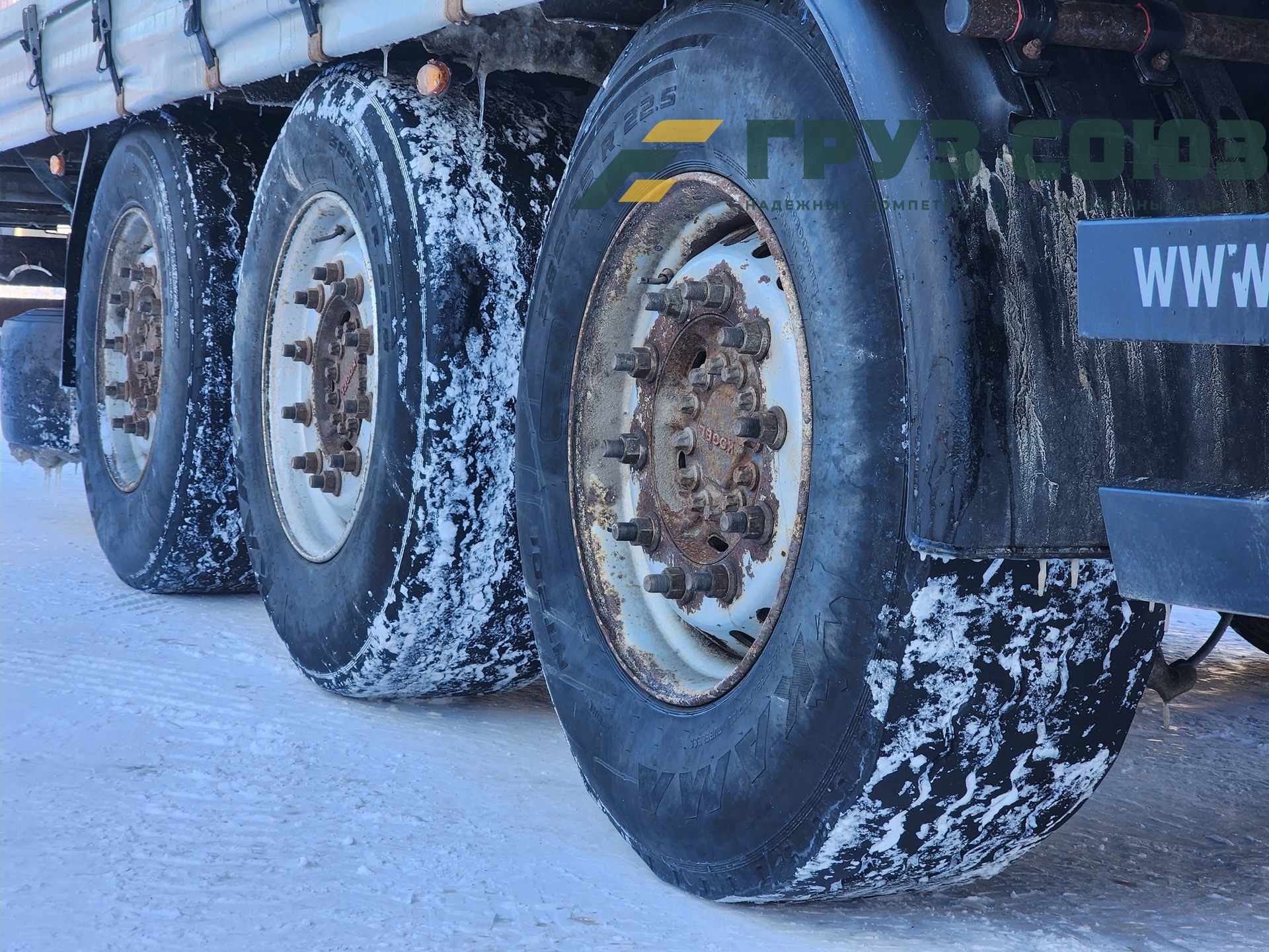 Установлены шины одного размера на всех осях: 385/65R22,5
