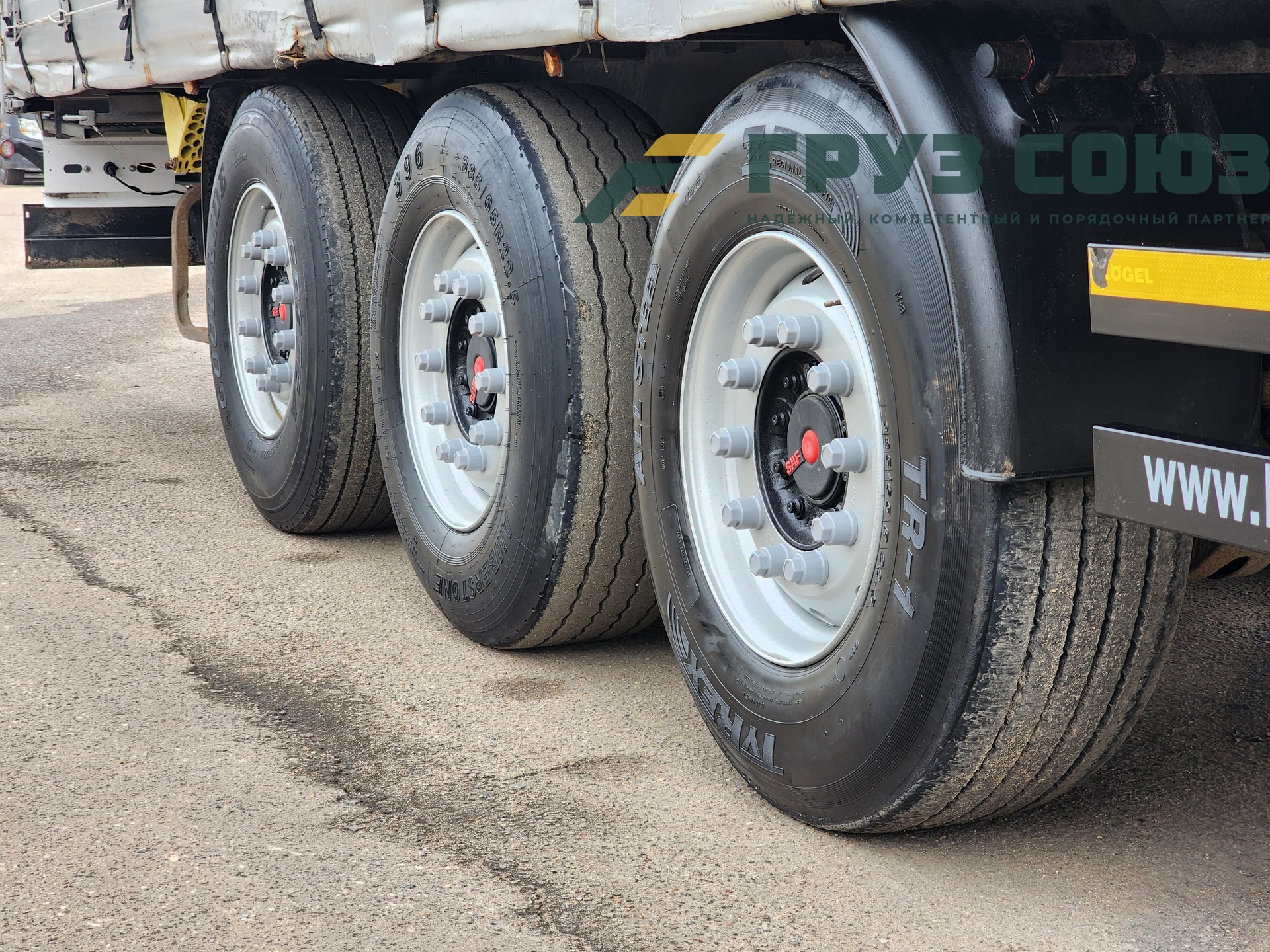 Установлены шины одного размера на всех осях: 385/65R22,5