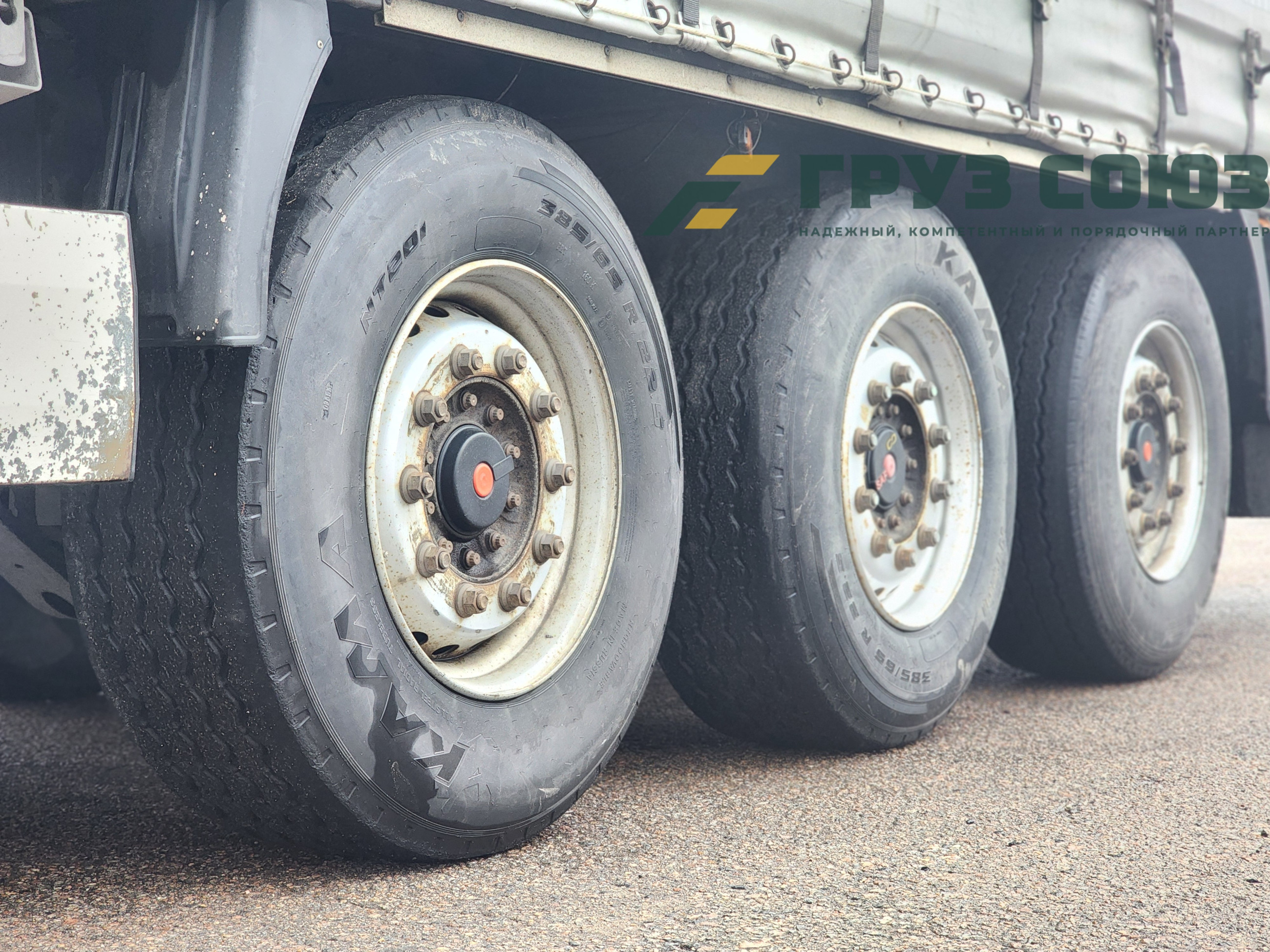 Установлены шины одного размера на всех осях: 385/65R22,5