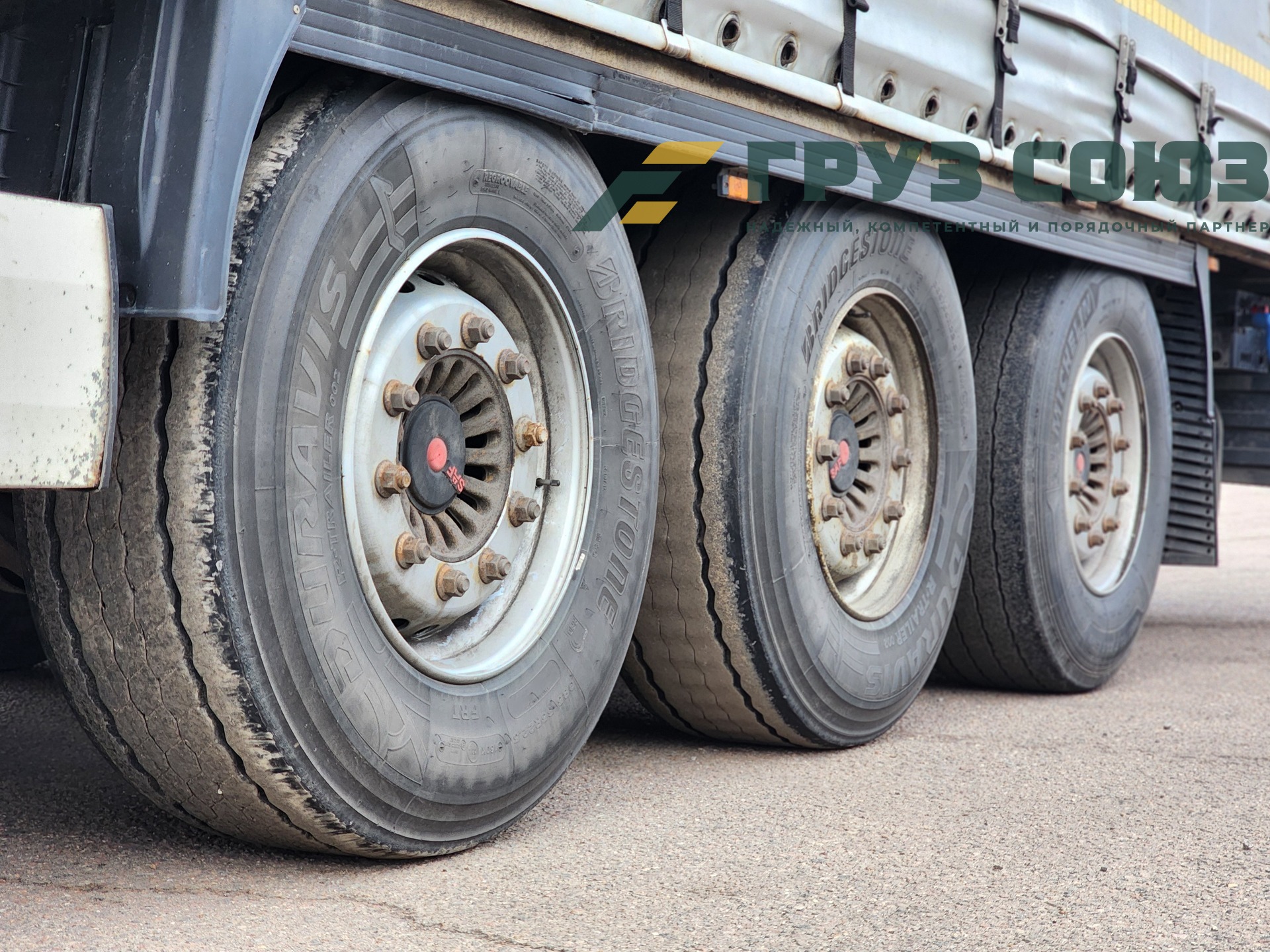 Установлены шины одного размера на всех осях: 385/65R22,5