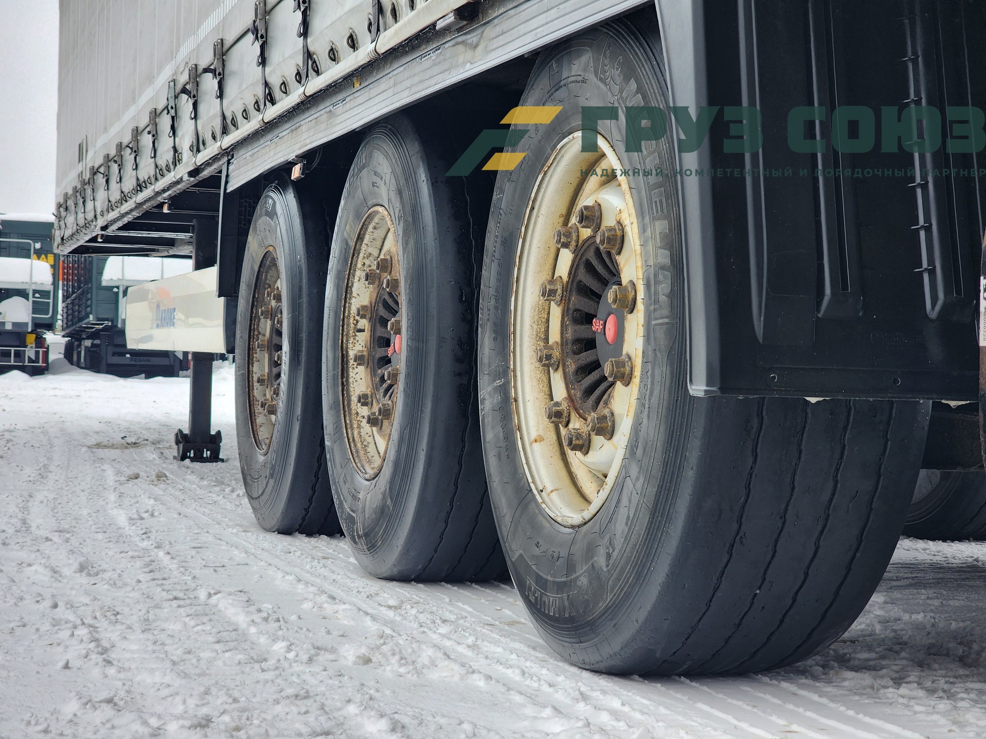 У полуприцепа - оси SAF, дисковые тормоза, интегральная подвеска.