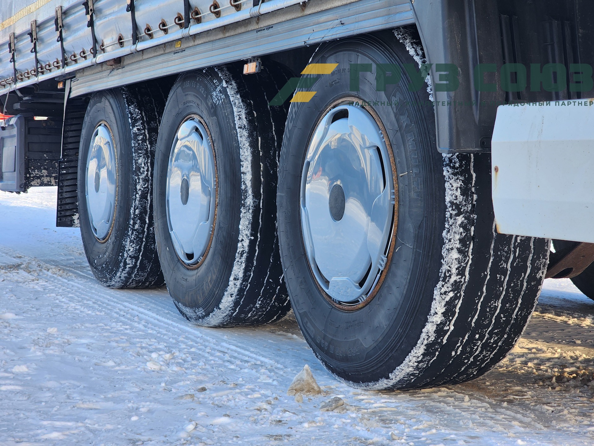 Установлены шины одного размера на всех осях: 385/65R22,5