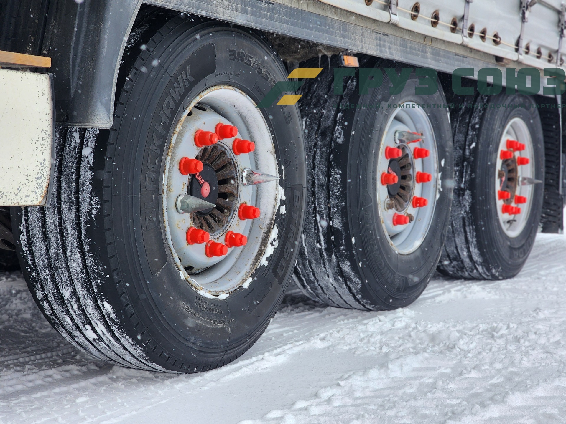 Установлены шины одного размера на всех осях: 385/65R22,5