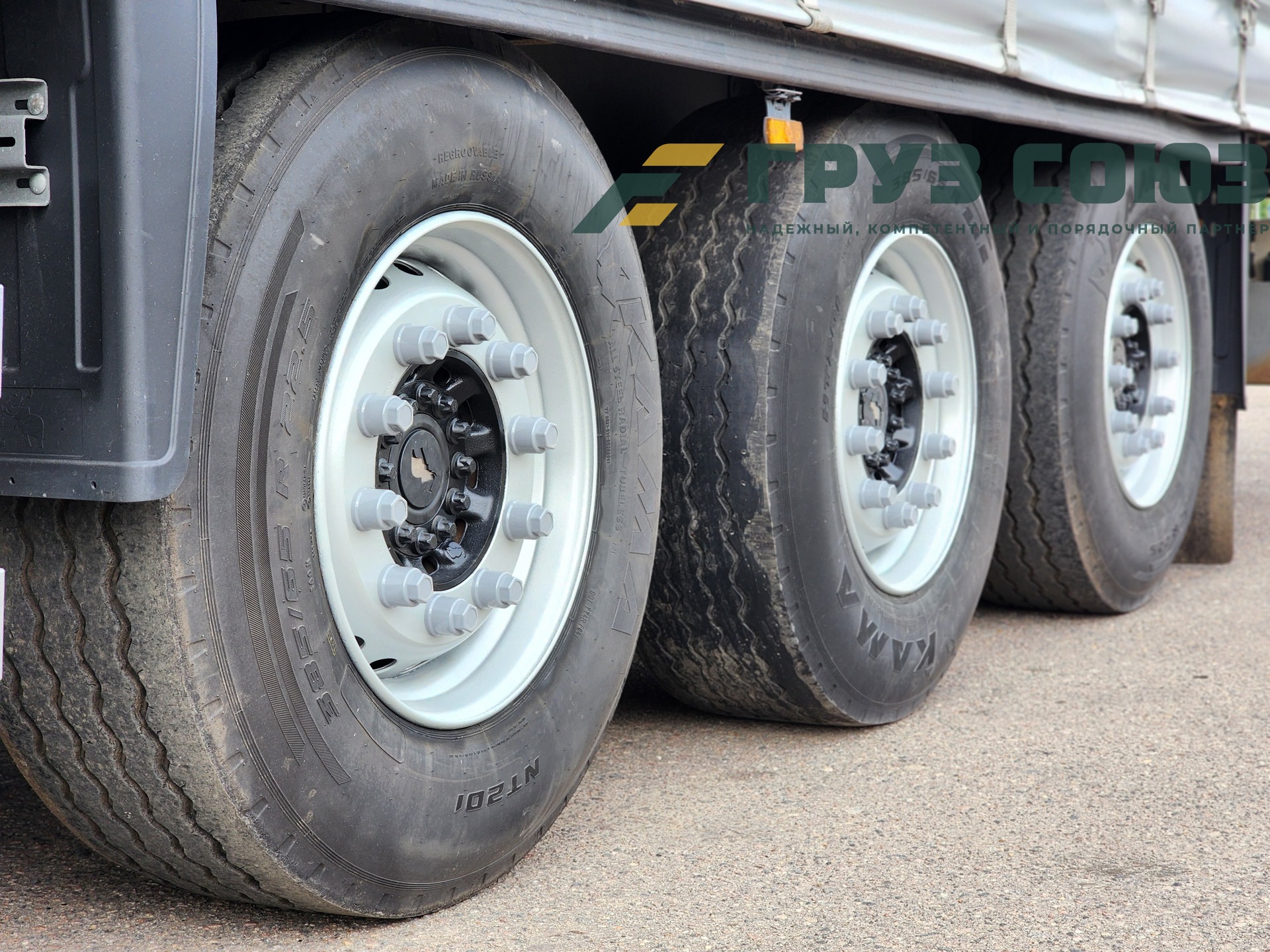 Установлены шины одного размера на всех осях: 385/65R22,5