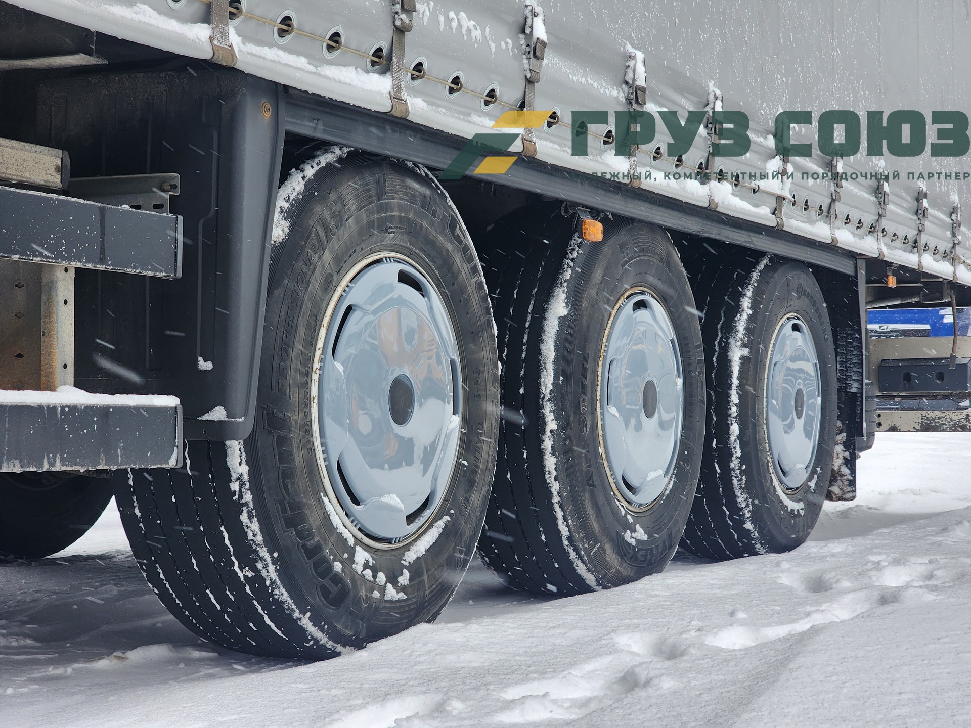 Установлены шины одного размера на всех осях: 385/65R22,5