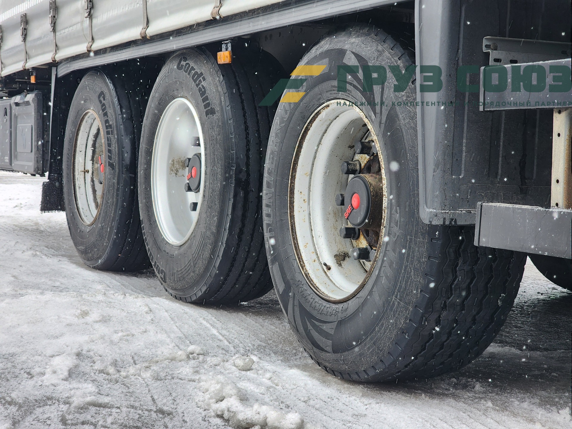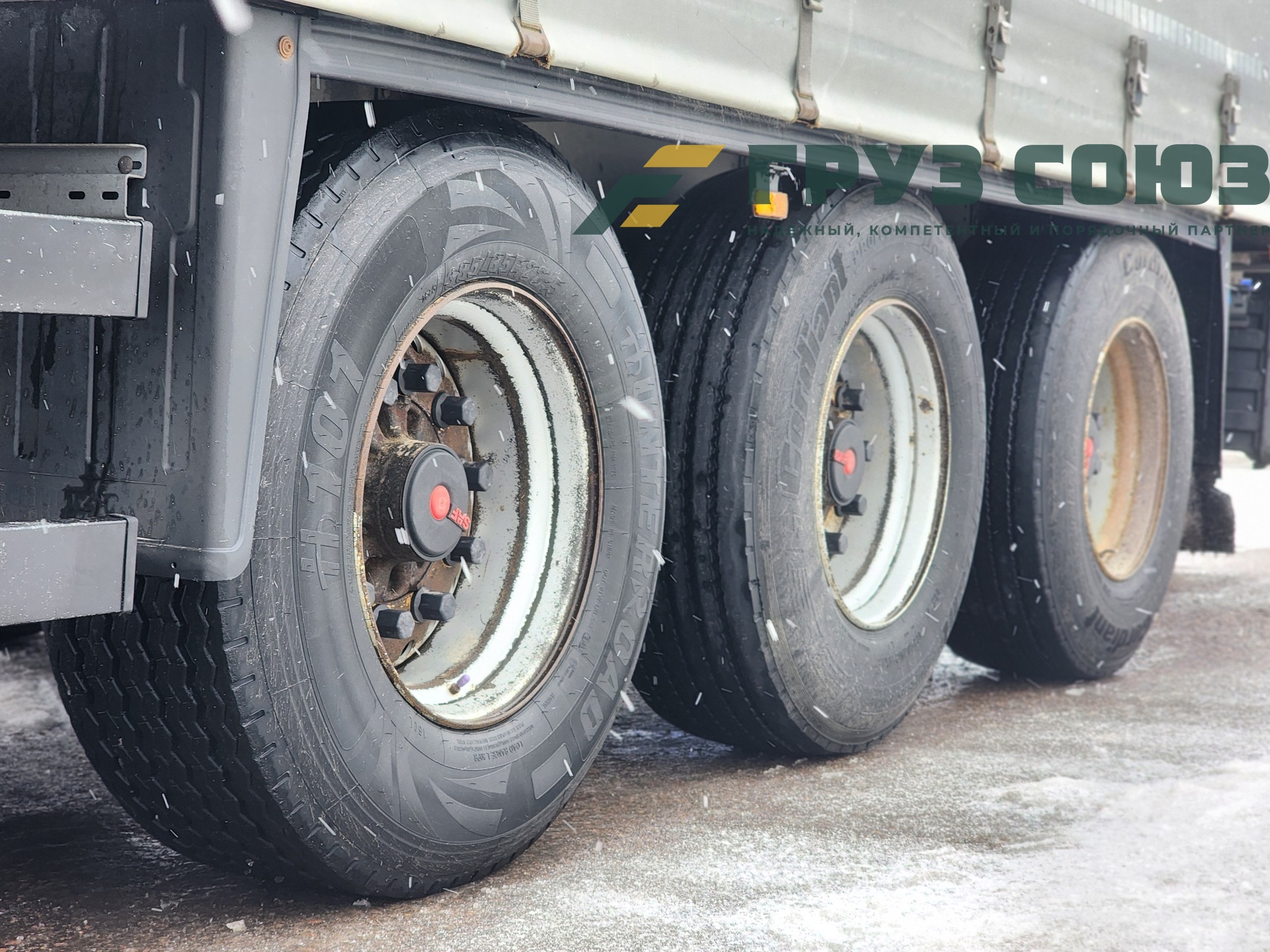 Установлены шины одного размера на всех осях: 385/65R22,5