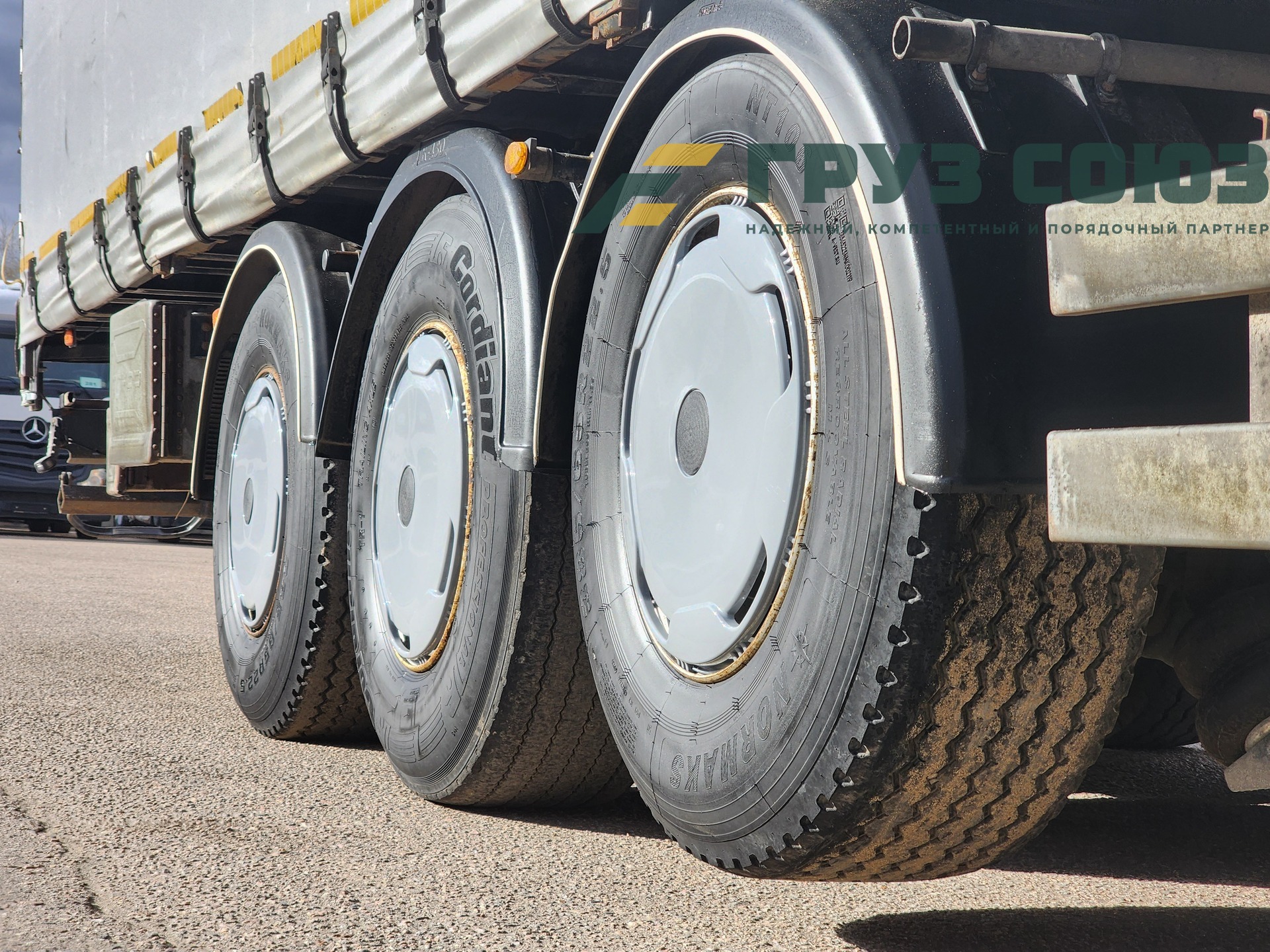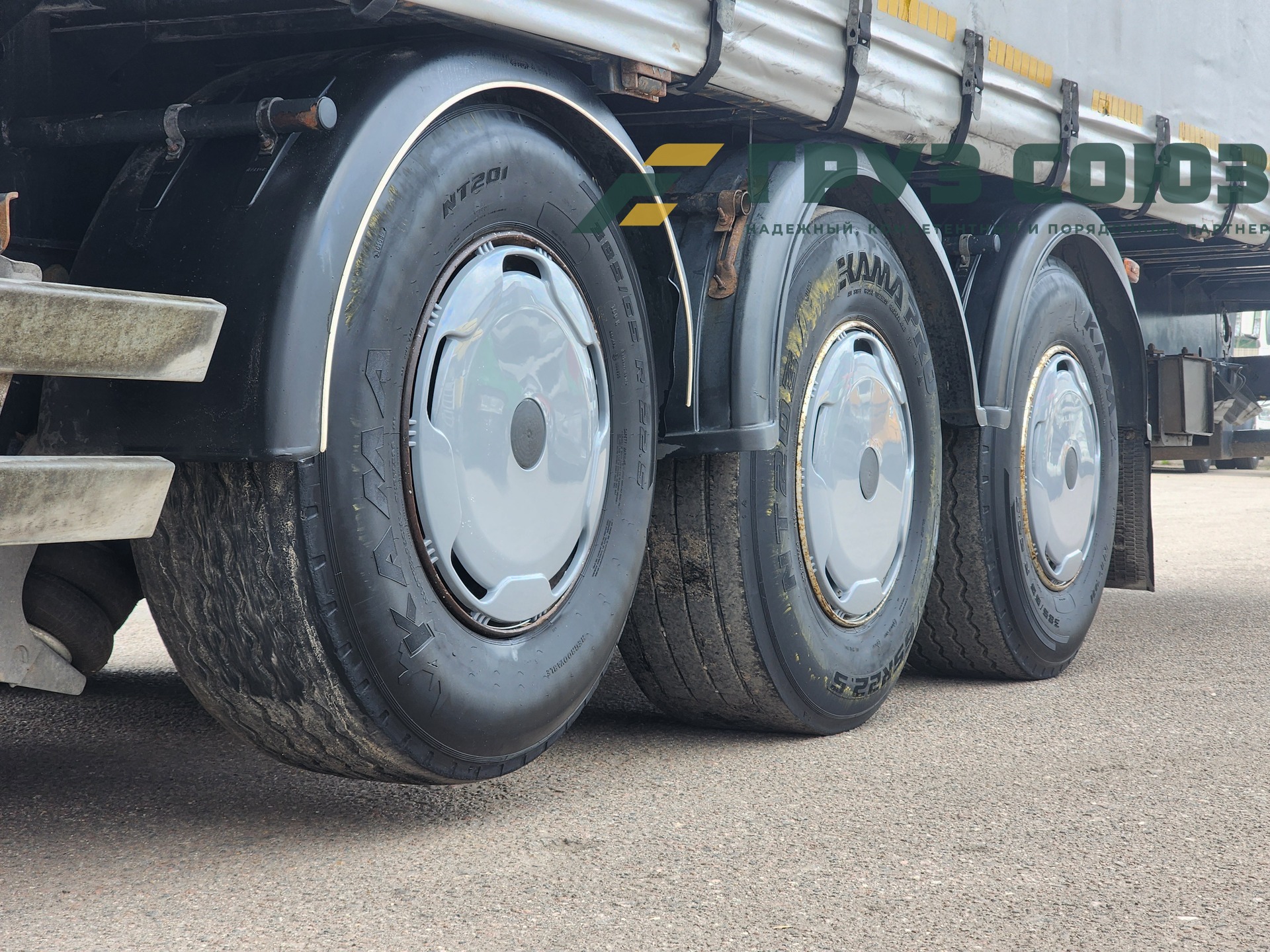Установлены шины одного размера на всех осях: 385/65R22,5