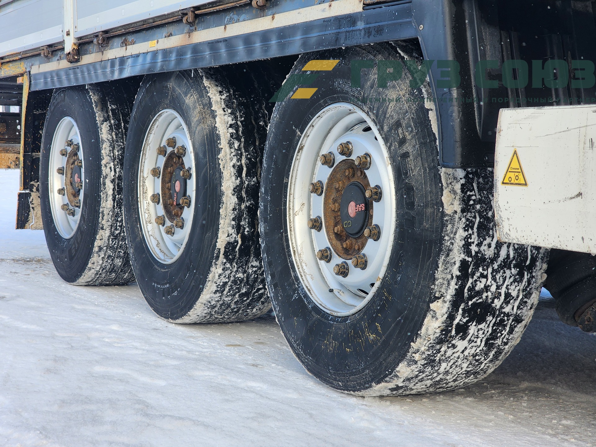 Установлены шины одного размера на всех осях: 385/65R22,5