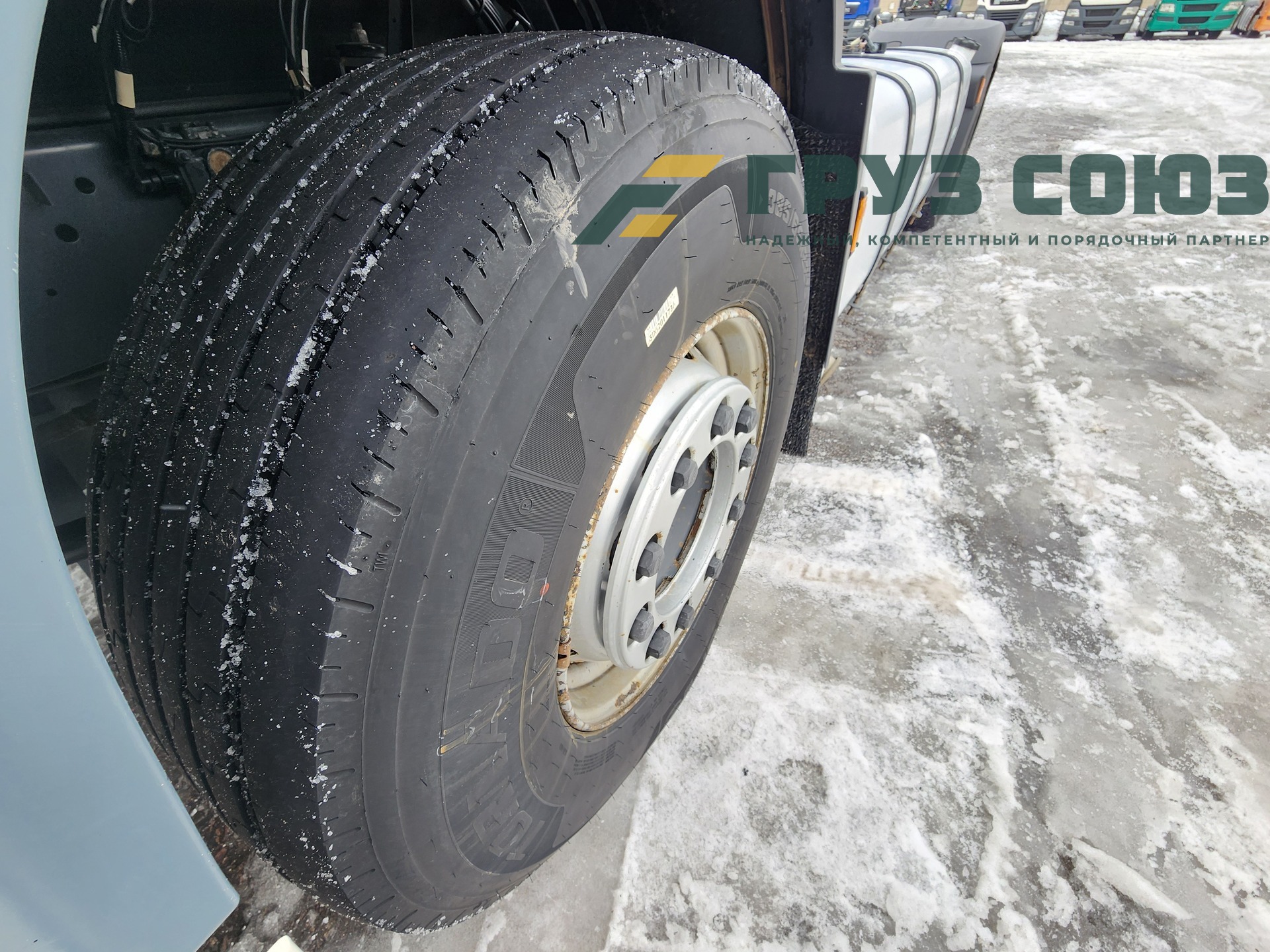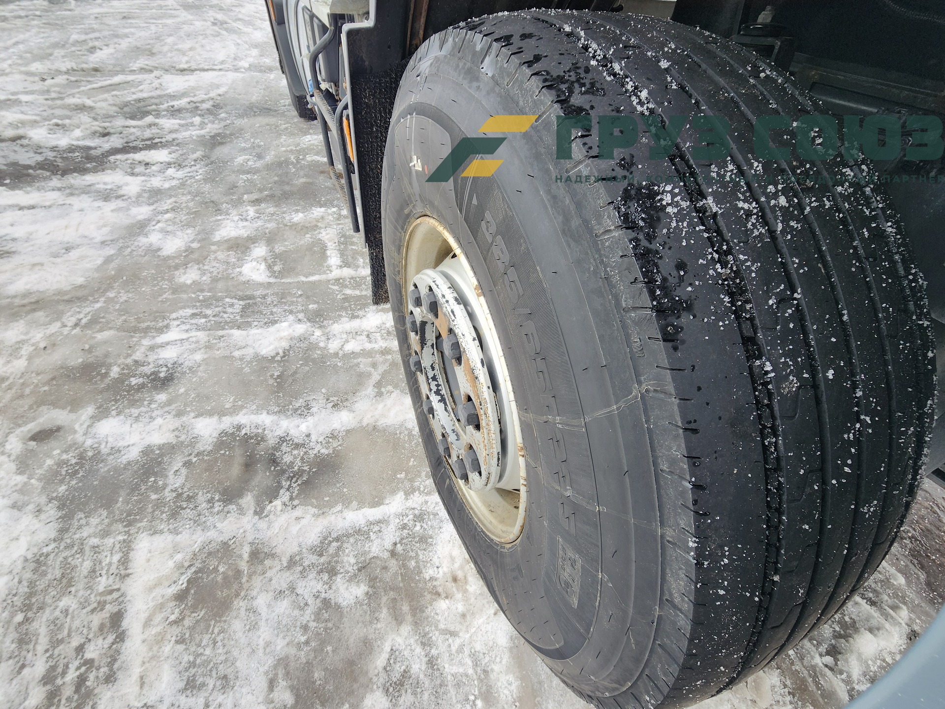 Установлены шины на первой оси: 385/65R22.5; на второй оси: 315/70R22.5