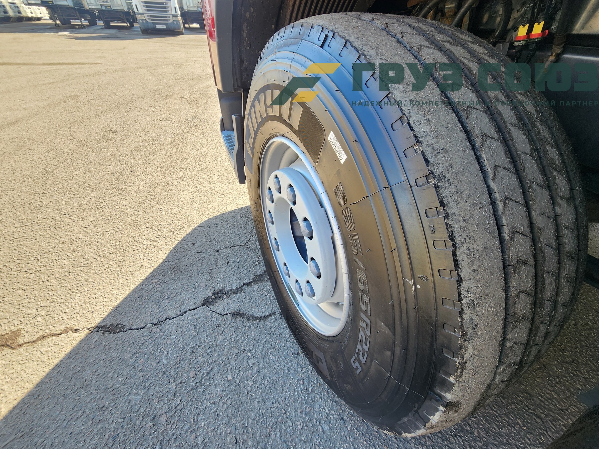 Установлены шины на первой оси: 385/65R22,5; на второй оси: 315/70R22.5;
