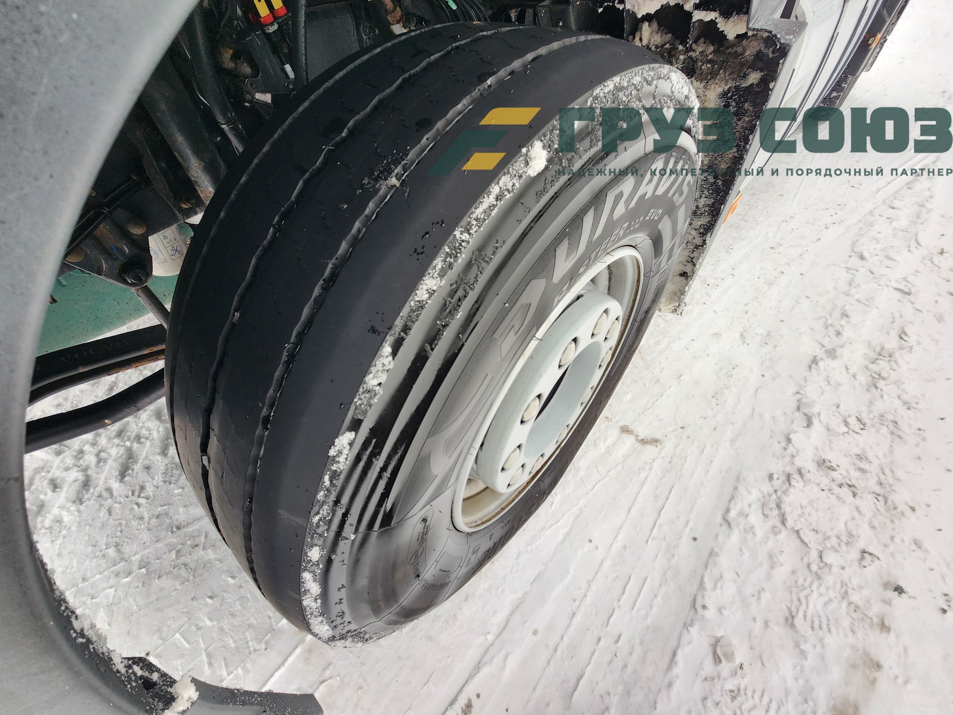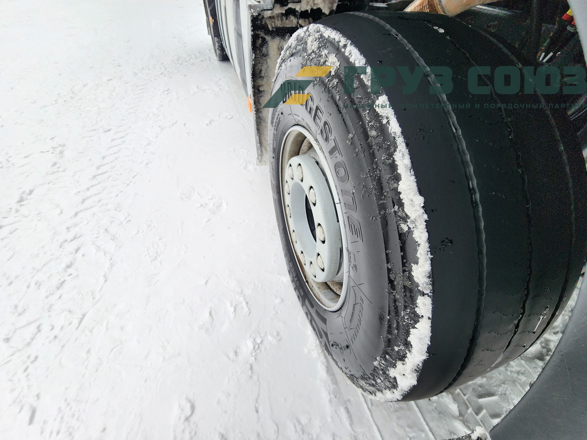 Установлены шины на первой оси: 385/65R22,5; на второй оси: 315/70R22.5;