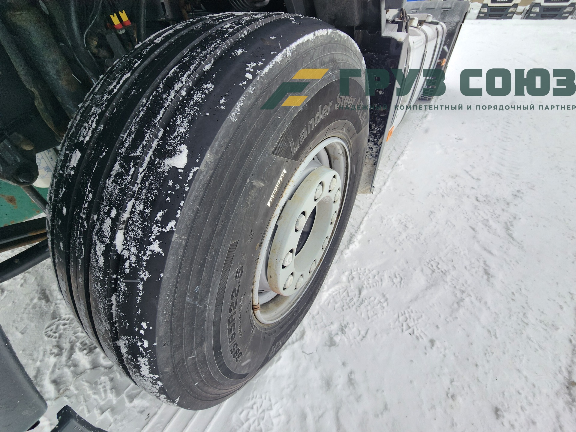 Установлены шины на первой оси: 385/65R22,5; на второй оси: 315/70R22.5;
