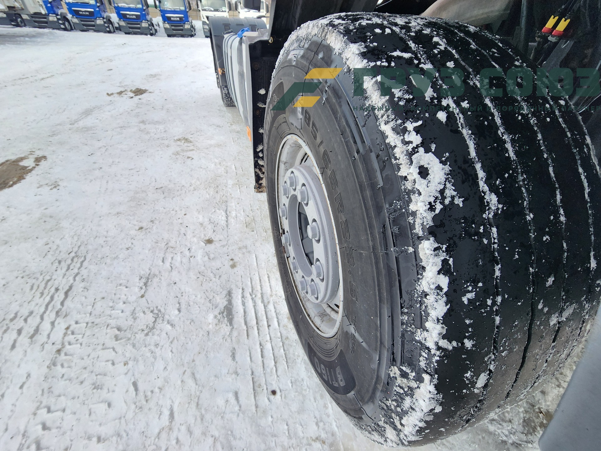 Установлены шины на первой оси: 385/65R22,5; на второй оси: 315/70R22.5;