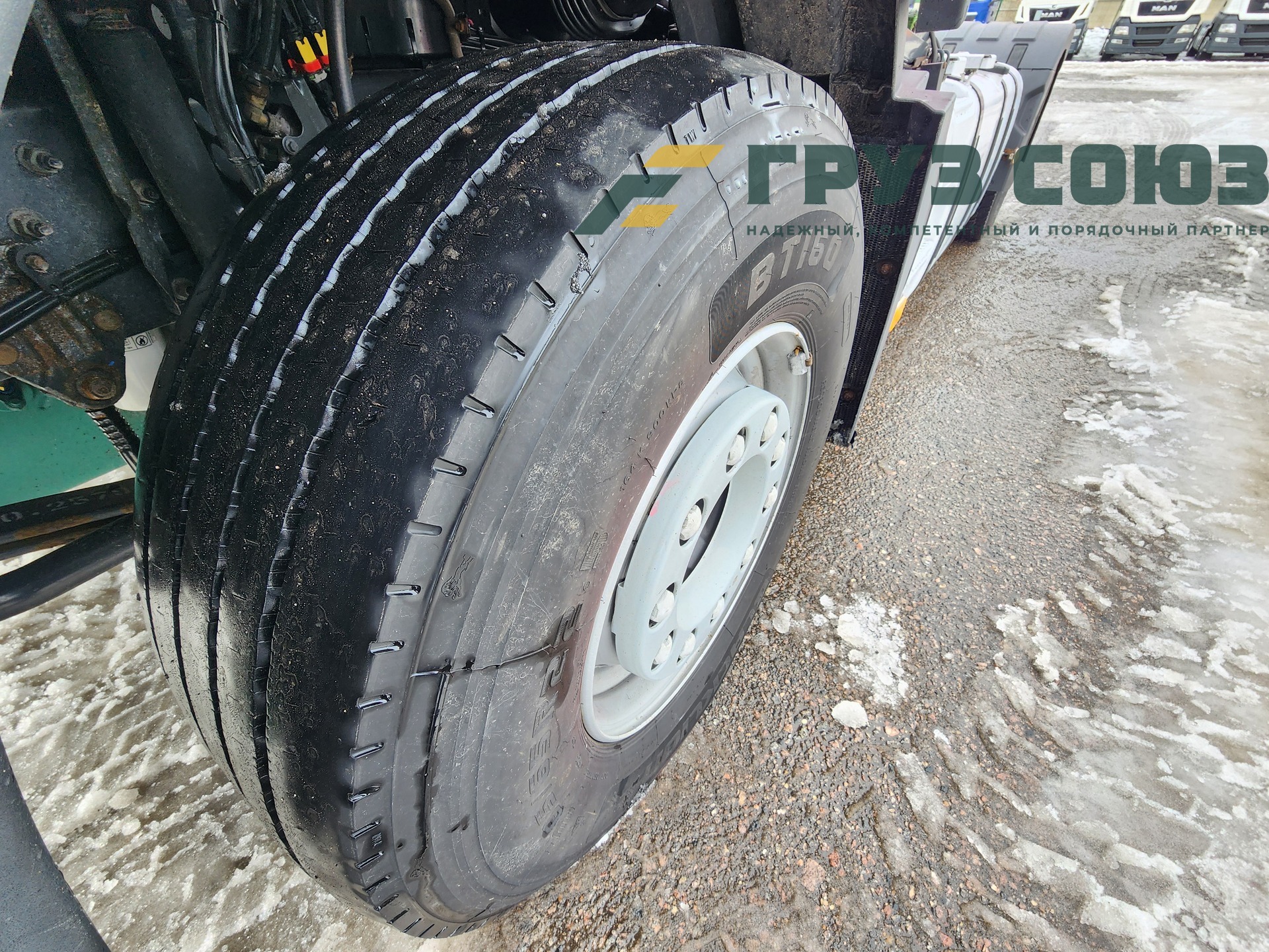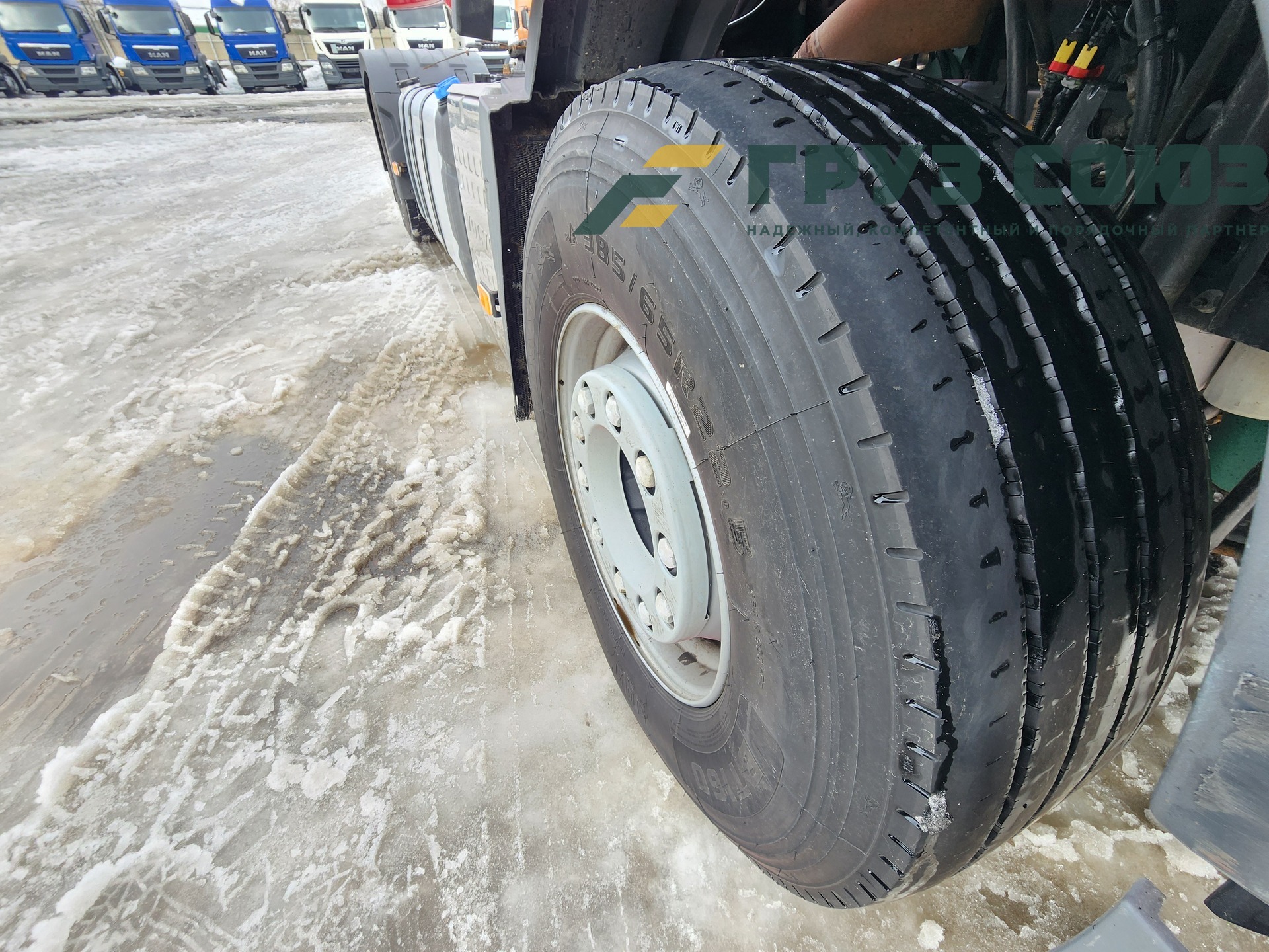 Установлены шины на первой оси: 385/65R22,5; на второй оси: 315/70R22.5;