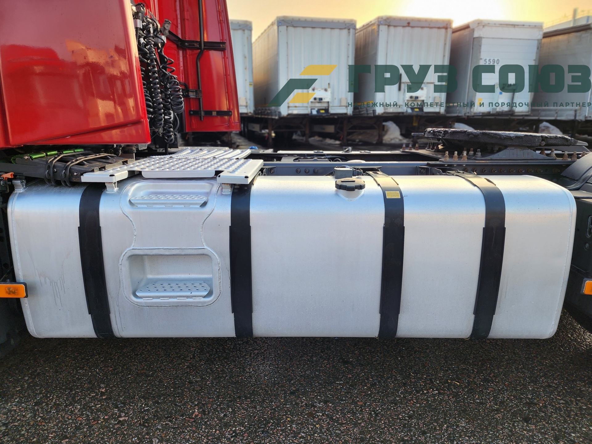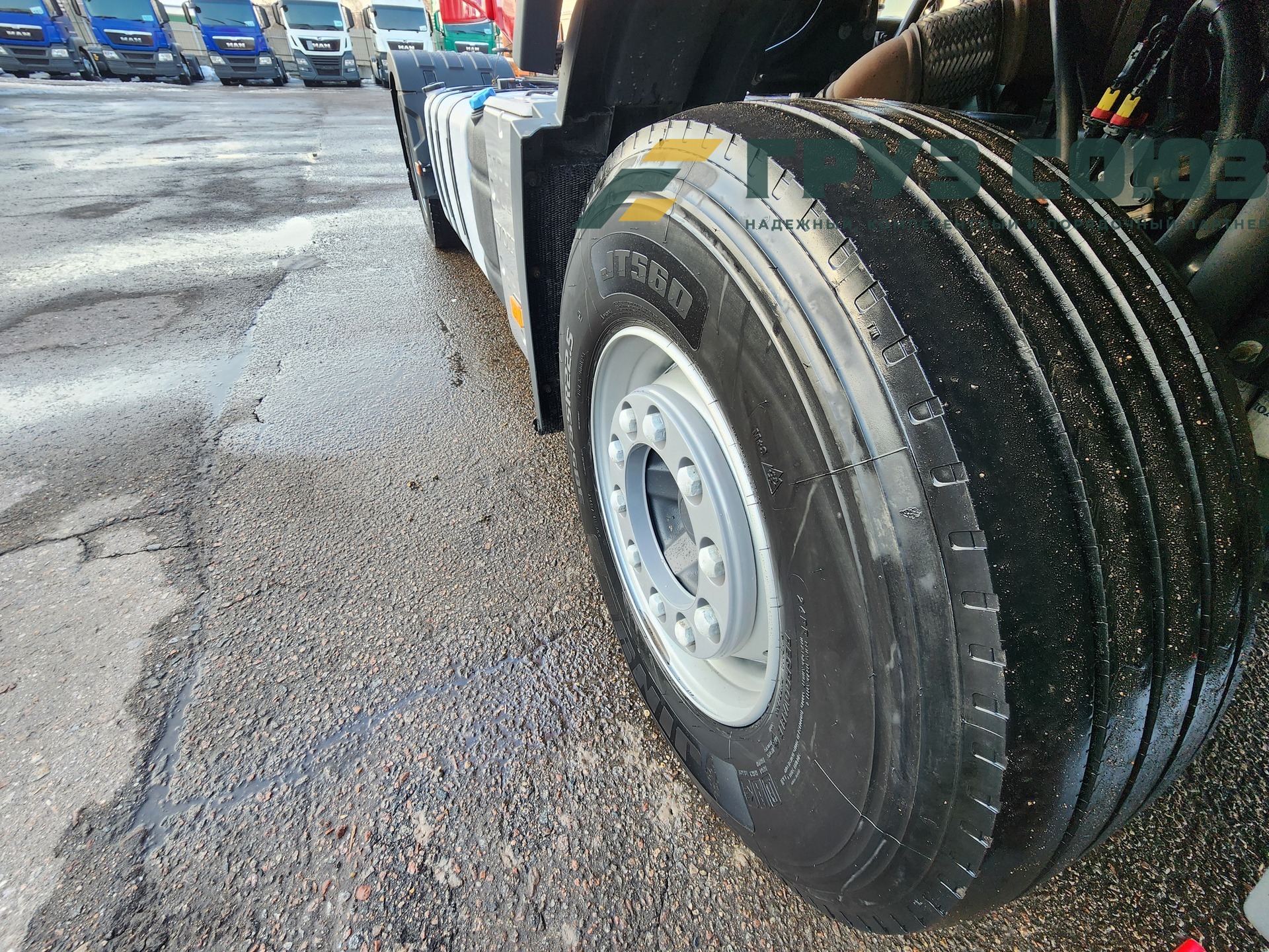 Установлены шины на первой оси: 385/65R22,5; на второй оси: 315/70R22.5;