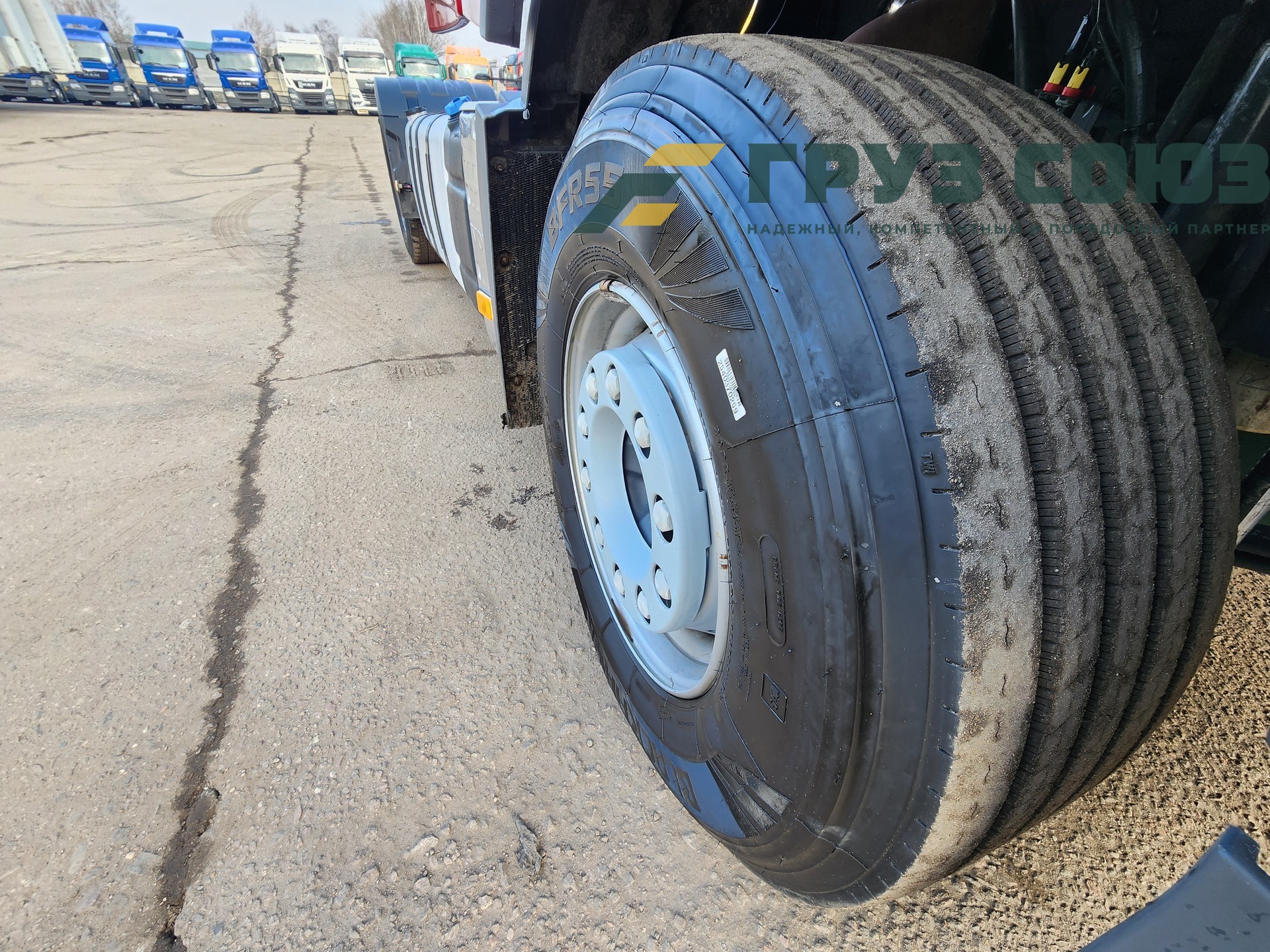 Установлены шины на первой оси: 385/65R22,5; на второй оси: 315/70R22.5;