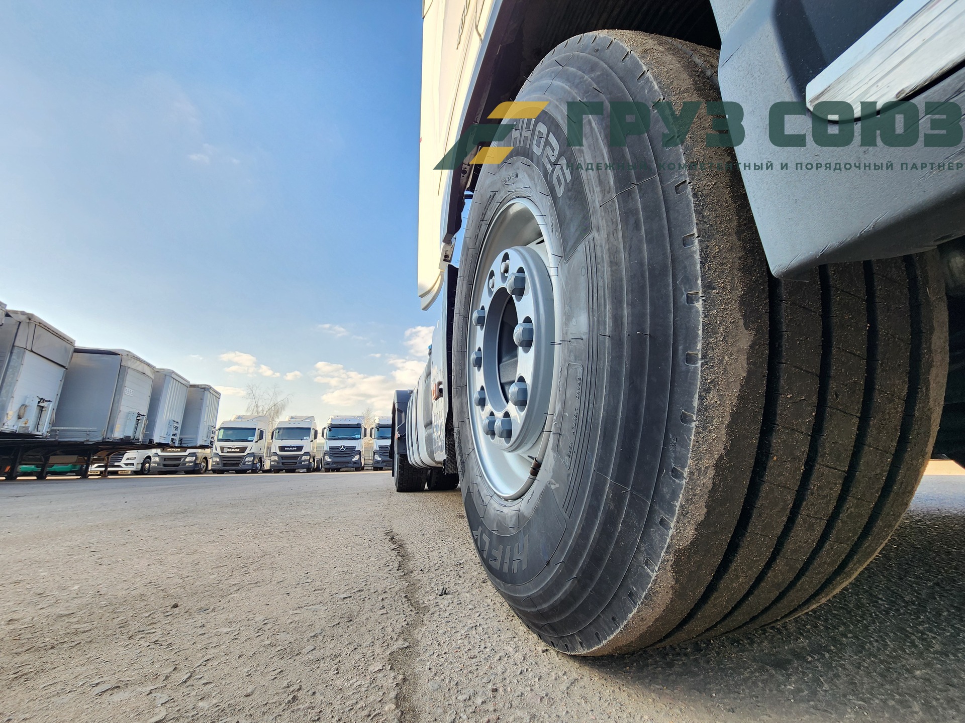 Установлены шины на первой оси: 385/65R22,5; на второй оси: 315/70R22.5;