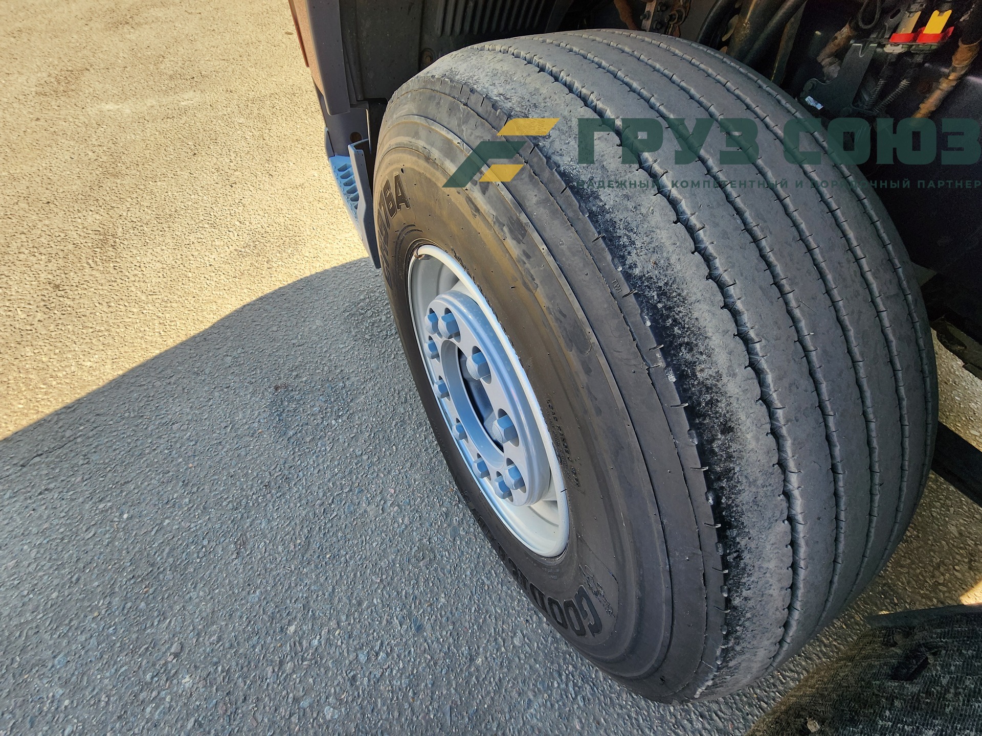 Установлены шины на первой оси: 385/65R22,5; на второй оси: 315/70R22.5;
