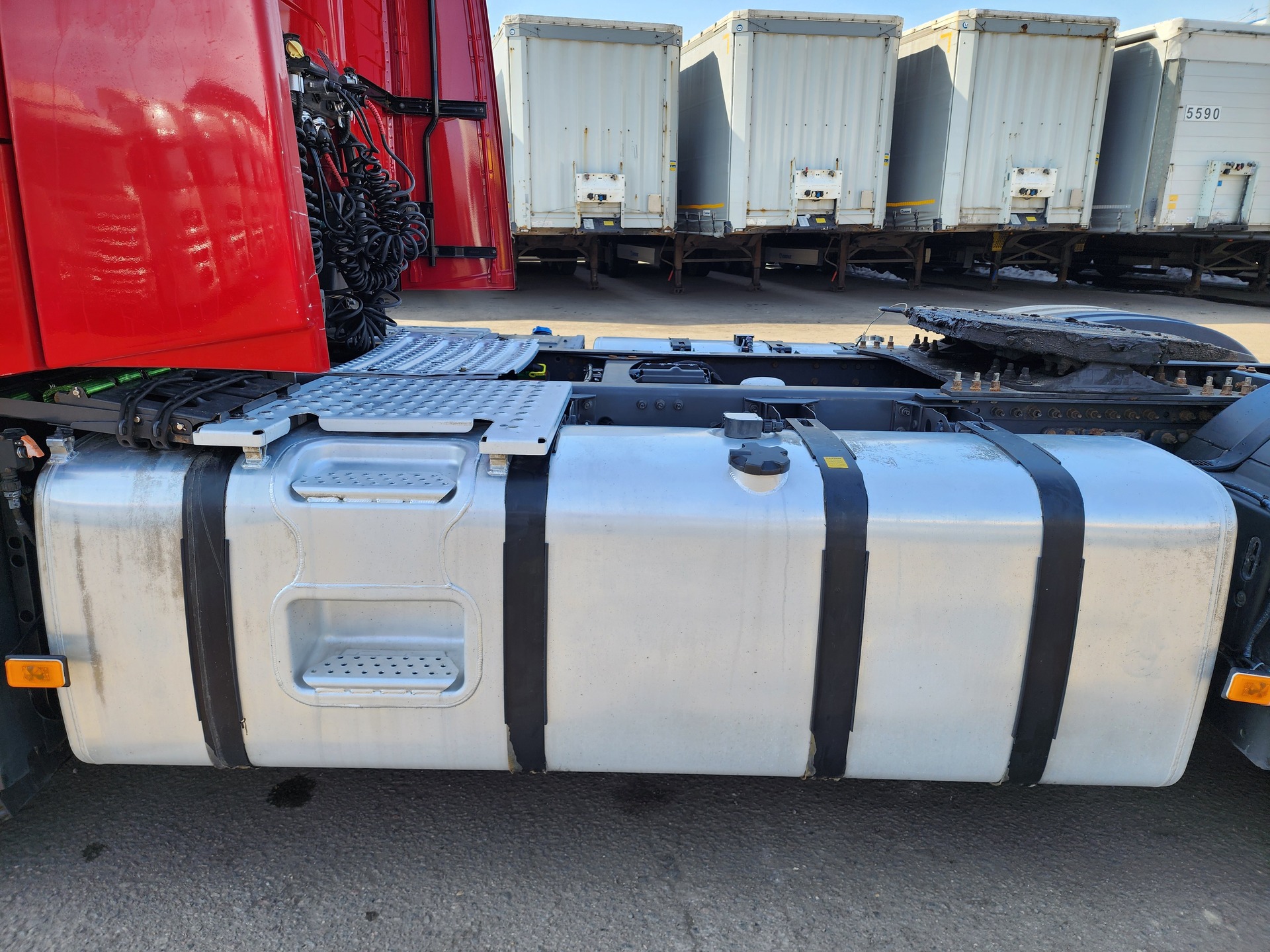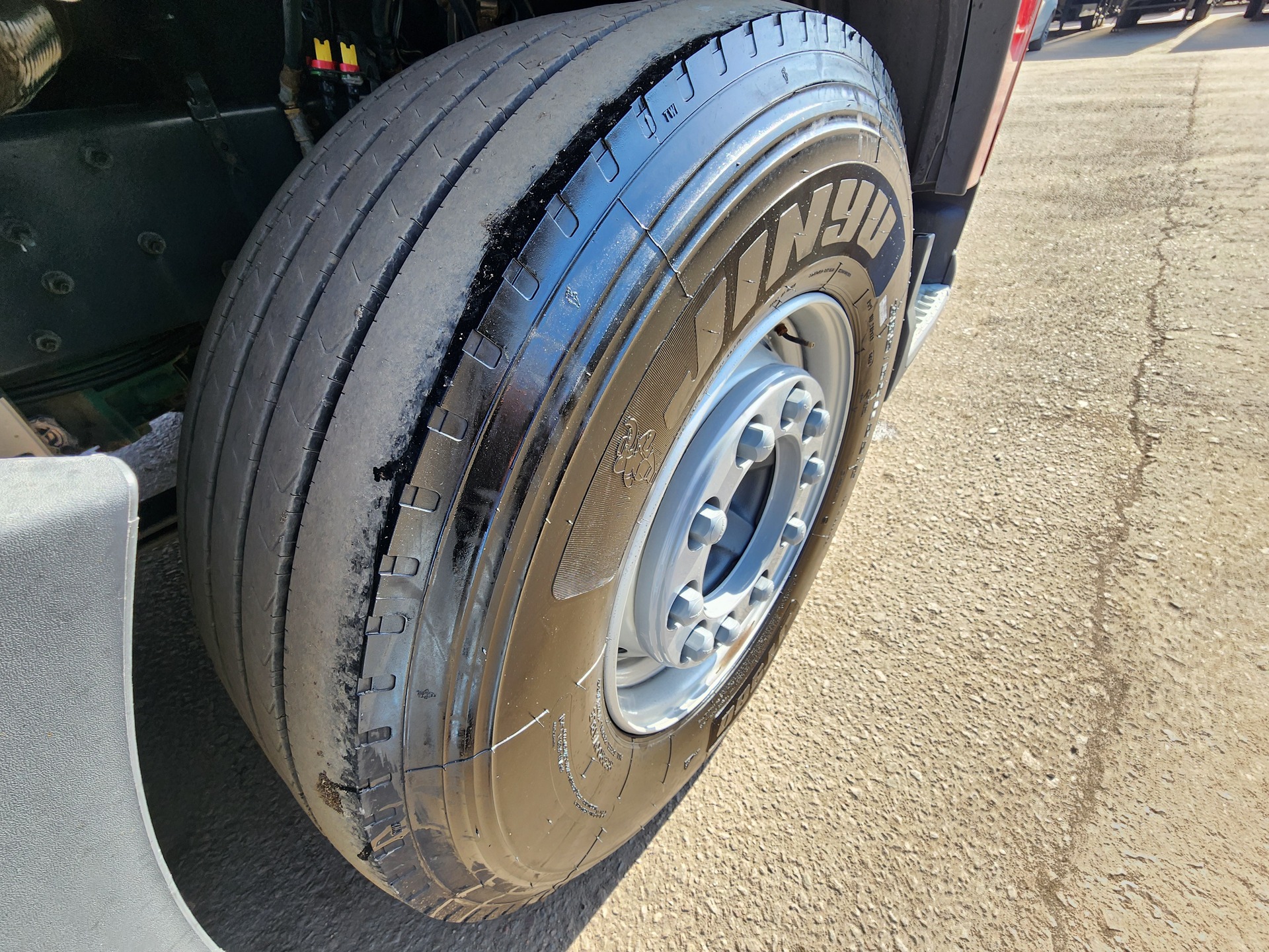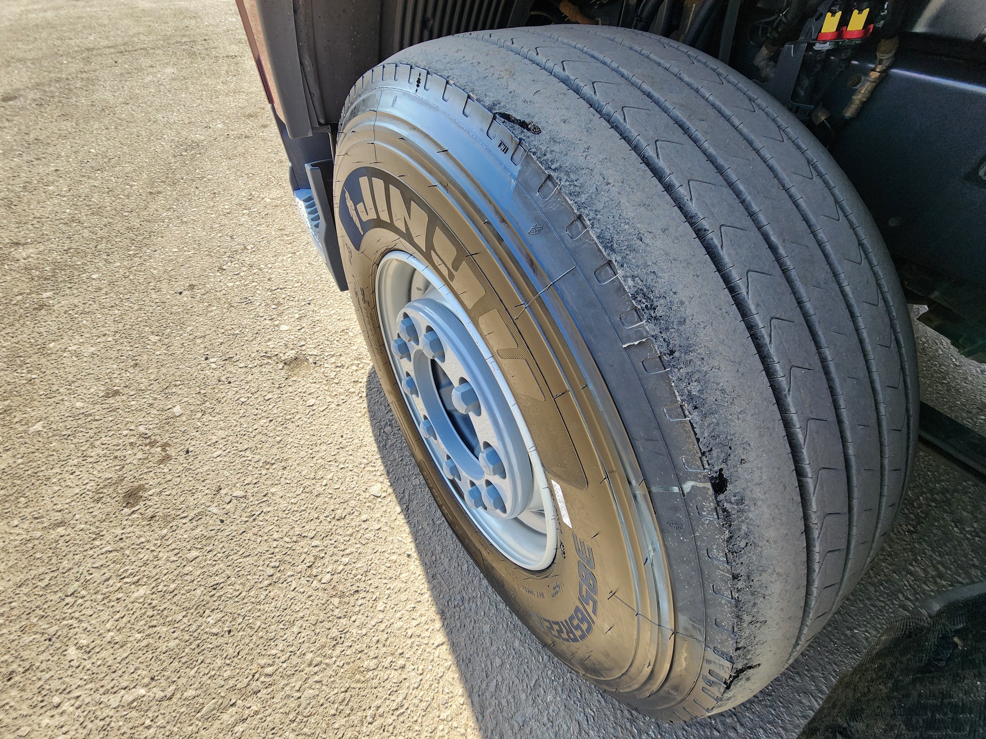 Установлены шины на первой оси: 385/65R22,5; на второй оси: 315/70R22.5;