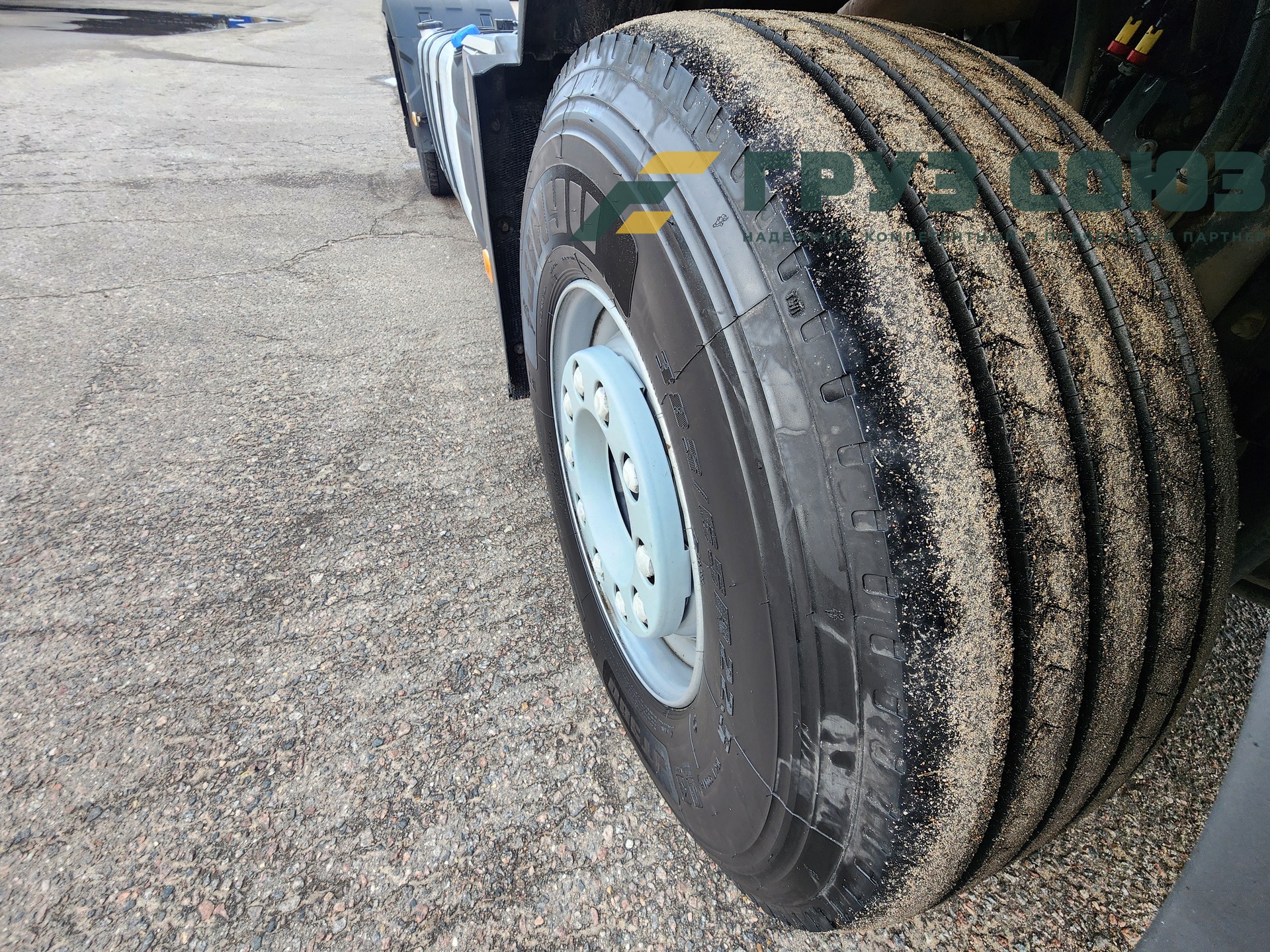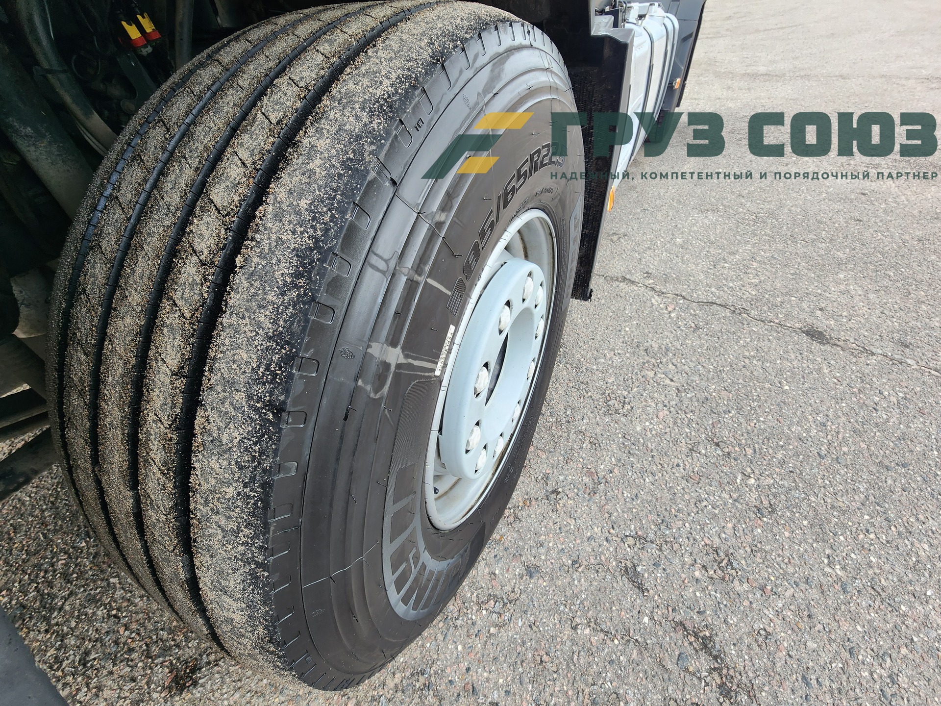 Установлены шины на первой оси: 385/65R22,5; на второй оси: 315/70R22.5;
