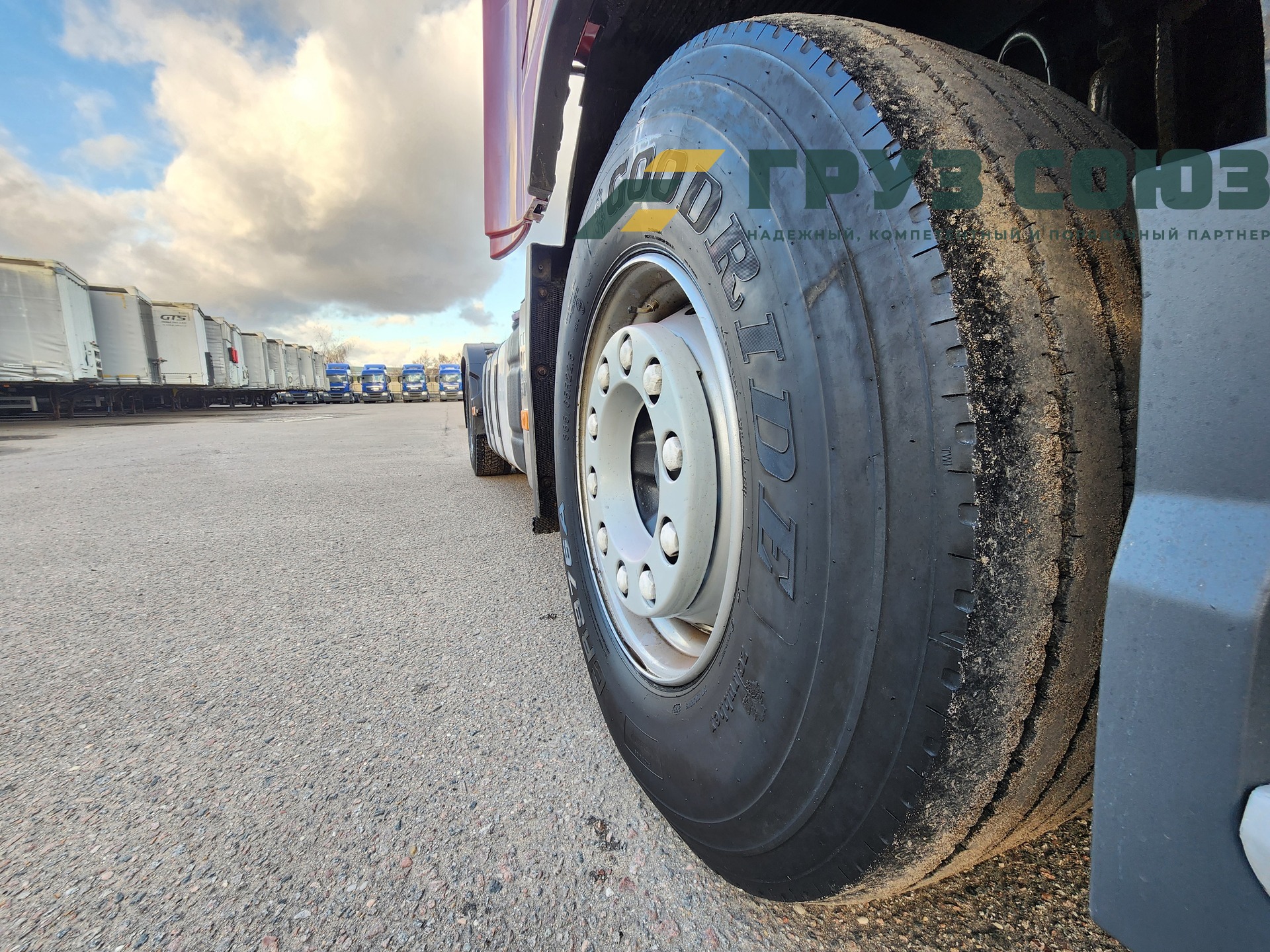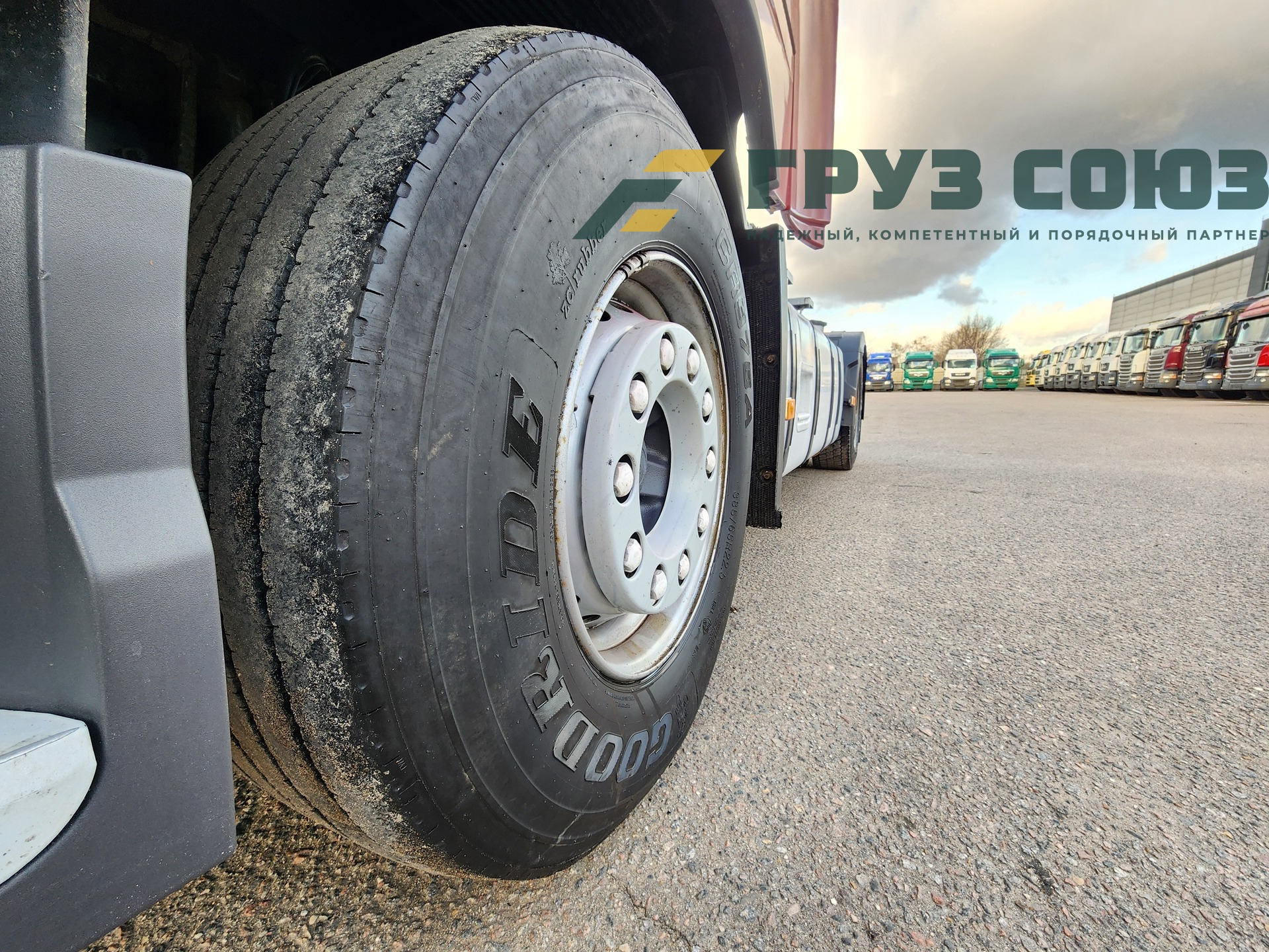 Установлены шины на первой оси: 385/65R22,5; на второй оси: 315/70R22.5;